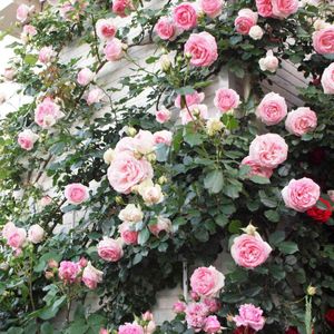 少しずつ冬支度中のつるバラたち。 道に面したレンガ壁には、アミロマンティカとカラメラが春に向けてスタンバイ。 手前のポンポネッラさんは、かわいくてカットに踏み切れないので、もう少しこのままで☺️
