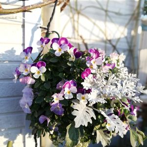 だいぶ前に作ってたハンギングなのですが、日当たりがあまり良くない玄関前においてて、なかなか成長しなかったり、日陰になる株が傷んじゃったので、場所を変えて養生中。