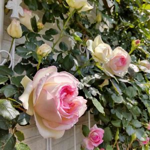 撮ったのに投稿しそびれ💦3/25のpicです💧撮り直そうかな‥と思ったけれど、今撮ると いよいよ緑緑過ぎてジャングル過ぎるからやはりコレを採用😅 今年の誘引です🌿備忘録として📝 ✳️左手前から、壁面にミルオンザフロスとアントニオガウディ。 ✳️ミニアーチにガウディとローラダボー。 ✳️アーチの下に見えないけど手作りへんてこトレリスに仕立てた品種不明のオールドローズ。 ミニアーチ奥側&窓上に向かってスピリットオブフリーダム。 ✳️その隣にまほろばのオベリスク仕立て。夢乙女の小さいオベリスク仕立て。 ✳️角の桜草が見える左の所にスノーグースとレイニーブルーの二色寄せのオベリスク、スノーグースは窓上にも。 ✳️一段上がった奥にデプレアフルールジョーヌとベルオブウォッキングを窓上に配したけど、デプレアはここは日照不足か花芽があまり上がってきてないので失敗。 ✳️デプレアの鉢の上に遅れて買ったマニントンモーヴランブラー。伸びてきたら角に差し色になるかな? ✳️ドン突き一番奥のアーチは群舞とウォッキング。 ✳️アーチの下にはアイアンフェンスを設置したのでそこにも群舞とアマンディーンシャネル、ダフネ少し。 ✳️その右のポール(多肉のハンギングで見えないけど)にダフネと紅玉、クレマチスのオベレク。オベレクはどっちかというとアーチ側かも。 ✳️ダフネは右手前のミニミニベット仕立て側にも枝を配置。 ✳️一番右に見える平面アーチはローブアラフランセーズと反対側からクレマチスのアバンギャルド。このアーチは蕾が色付いたらお花が内側で見られるようにくるりと180度回転させるつもり。 ✳️残りは木立です🌿 もうお日様が奥には差し込まなくなってきたから、左側のバラたちがここから上手く開花するかどうか…ヒヤヒヤです💦