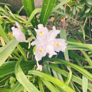 ご近所さんの庭に咲いてた白い花 初めて見ました🧐 どなたか名前を教えてください🙏 追記 @朱雀さん ありがとうございます😊 『シャガ』だとわかりました❗️