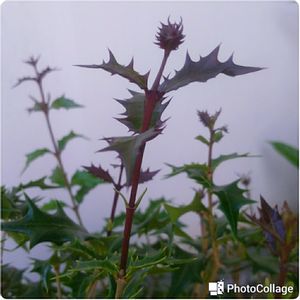 *柊 8月に剪定したところから びゅんと新芽が出て来ました。この木は昔から邪気を払って くれると言ういい伝えがありますね。私の地方では節分にイワシの頭を差して門に置くと鬼を追い払ってくれると言う風習があります。