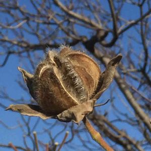 酔芙蓉に実が付いて中からタネが覗いてます😀 青空が広がってますが寒いですね〜 12月ですもの、寒いのは当たり前😅 今年も1ヶ月を切って気持ちは付いて行ってませんが、体調を崩さないように頑張ろ〜〜🤗💪