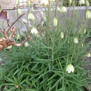バイモユリ咲き出しました😀 わさわさ茂って、後ろの酔芙蓉の大株が見えなくなりましたよー😅 まだ寒い日が続くようで、酔芙蓉の芽はまだ出て来ませんね〜😂