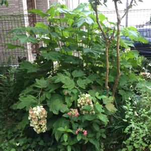 手前はカシワバアジサイと山アジサイ紅です。 奥は酔芙蓉です🌸 春からこんなに背が伸びました😀💕 明日、バッサリカットしようと思ってます😁 このまま育てると花が咲く頃にはこの倍近く伸びて、お花が遥かに遠くになってしまいます🌸🌸💦