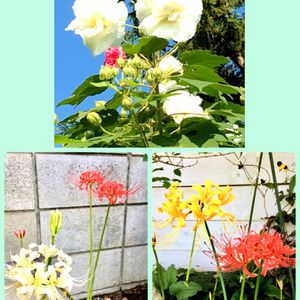 こんにちは😄 畑に行ったら彼岸花が咲いていました💕🎶 花芽が沢山でて来ているのでこれからまだまだ咲きそうです✌️ 酔芙蓉が青空に映えて咲き出しました💕🎶
