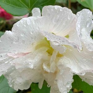 酔芙蓉さん💕今日は雨降りで気温が上がらなくて白いお顔のままでした💕雨に濡れる白いお顔の酔芙蓉さんも美しいと思いましたが明日は雨が上がって頬をピンクに染められるといいな💕