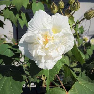 もう最後の酔芙蓉 この子はこれでお嫁に出します👰 ウチの庭ではこれ以上大きくなると 管理できなくなるので 貰ってもらうことにしました🥲 種から2年目、今年はよく 咲いてくれました🙏