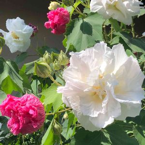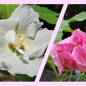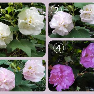 似てる花 八重のムクゲと八重の芙蓉そして花弁がイッパイの万重の芙蓉の花🌼✨ みんな可愛く咲いてます💞 あっ✨八重のハイビスカスも似てるよね‼🌺❇️