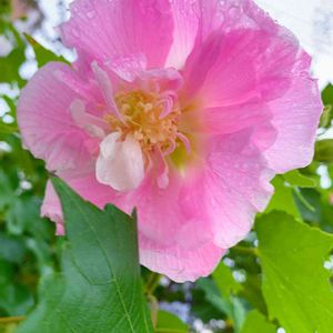 💗酔芙蓉(スイフヨウ)💗 今朝 お散歩道で 1輪だけ 咲いていました😀 このお花の特徴は 朝 白い花を付け 昼頃からピンク色に徐々に変化し 午後にはピンク一色となる変わったお花です。 朝 花が咲き 夕方には萎んでしまう一日花で お酒に酔っているように見える事から「酔芙蓉」と名付けられたようです🍶💗 🐶🤍🌟。:*〜🐶💗🌟。:*〜🐶🤍🌟。:*〜🐶💗🌟。:*🐶🤍🌟。:*〜🐶💗🌟。:*〜🐶🤍🌟。:*〜🐶💗🌟。:*