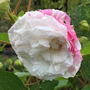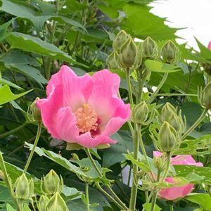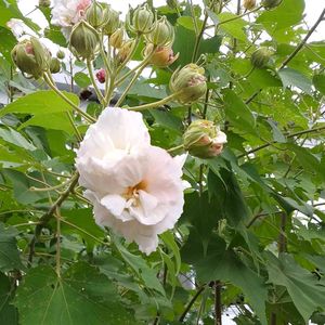 酔芙蓉八重咲き 蕾の中に花弁がぎゅうぎゅう詰めなので開くと重い💦 そんな感じで咲いています😊 八重にも色々あるみたい