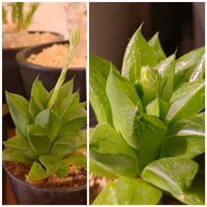 ハオルチア 2種類 花が咲きました。 種が出来ると嬉しいのですが。。 取り敢えず、咲いた花を近づけてます。