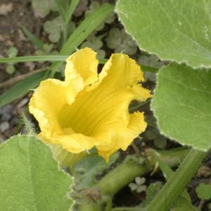 今日のお花 🍀カボチャ ウリ科 カボチャ属 散歩路 大きな黄色い花を咲かせていた バターナッツカボチャ