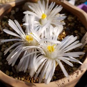 寒くなりましたねぇ💦 昨夜は 毛布追加しました(笑) フェネストラリア 群玉 咲いてました💕 なんと、ダイソー産です😅