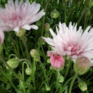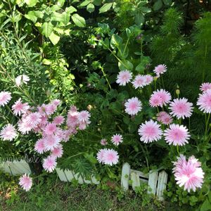 クレピス モモイロタンポポ 1番花と2番花🌸 鉢に、リムナンテスと同居しています。 リムナンテスはネモフィラみたいに背が低い、これは背が高い、で、同居成功❣️ 花芽沢山あるから、期待できそうです❣️