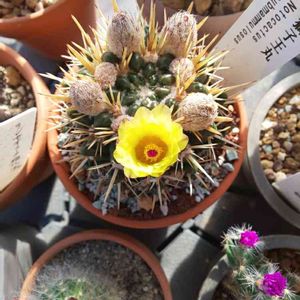小さい獅子王丸 実家から引き取りました。 トゲを含まずに本体の径は、約2.5cm。 固める土のまま半年以上そのままと知り、引き取ってきました😖 肥料入りサボテン用土と表面にメダカソイル(竹炭系)で植えました。 ネットで調べたら、固める土で長期間放置されてたサボテンは植え替え直後に水をあげた方が良いとあったので、水もあげました。 大きくなってくれるといいなぁ。いつかキレイな花咲かせてくださいませ☺️✨ 獅子王丸って、ノトカクタス(パロディア)属でホルヒカや翠晃冠はギムノカリキウム属なんですね😅 属性の違いが未だによく分からない😔