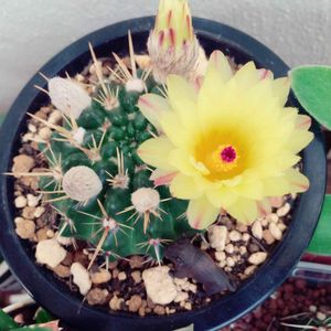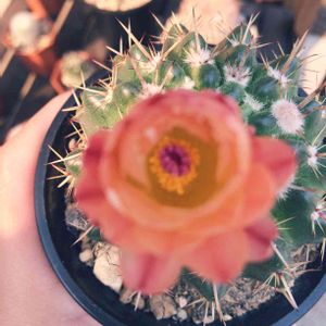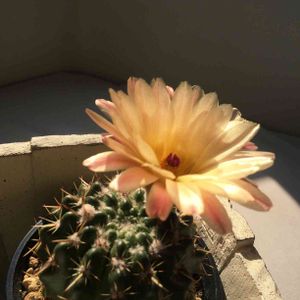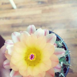 サボテンの花が咲きました!8年目にして初めてのお花、嬉しすぎます😂 根っこが少なくてグラグラしているのが心配です。。。どうしてあげたら良いのか悩んでいます。