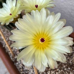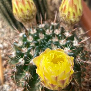母のサボさん🌵(獅子王丸??) …今‼️(今日13時半頃) 何年も咲いてなかったのに去年はひとつ、今年はみっつ🌼🌼🌼