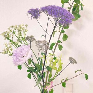 少し投稿に間が空きました💦 今の一番大きな花瓶はこんな感じ。紫でまとめています。 子供が通う小学校の方に行く機会が増え、新しいお花屋さんを開拓しました。 ちょっとした発見、楽しいですね。