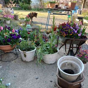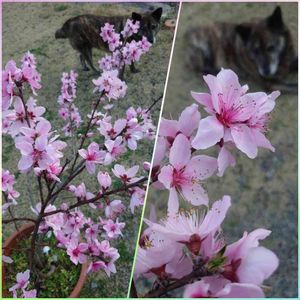 数年前に🍑桃を食べてその種を庭にポイッと放り投げておいたら芽が出て鉢に植え替えたモモが今年もたくさん花をつけてくれました 去年は4月4日の投稿でしたが今年は半月ほど早い満開です 今年もあま〜〜い🍑食べれればいいな〜〜