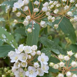 今日のお花 🌿コデマリ スマホのストロボ発光で撮影したら何となく雨粒が光ってます…