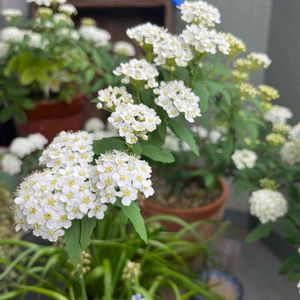 ベランダでコデマリが満開です 今年の春のベランダは賑やかです。 在宅になって欠かさず水やりしていたからかな。。。
