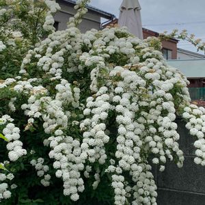 こんにちは🌿 小雨☔️の中、白く可愛い小手毬の花が咲いてました🥰