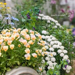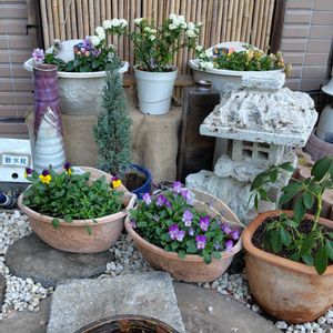 マンション修繕工事期間限定の和庭園 バージョンアップしました 小手毬、パンジー、ビオラで彩り追加 工事で折れたシマトリネコの枝は復活せず… コニファーと観葉植物にグリーン入れ替え 手前の花鉢は、切戻したお花フル活用 竹柵を押さえてるブロックを麻布で目隠し ブロックに乗せた鉢植えの落下対策は、竹柵に麻ひもで吊ってみました 赤ピンク系のお花も欲しいな〜 ひな祭りの花桃の枝、外は厳しいかしら…