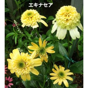 エキナセア レモンドロップ 5輪咲いてきました。 左上は花びらを虫が食べてます。 昨日 消毒の薬かけましたが今日の雨でとれたかなぁ🤔 こんにちはm(_ _)m 今日は🍃風が強く時折雨も 大雨警報になりました。