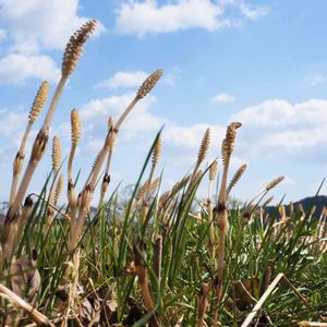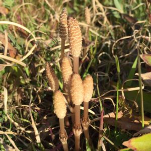 ご近所さんとの境目を見ると、スギナがたくさん生えていて、つくしがニョキニョキ出ていました。 手前の子たち、仲良しですね(*˘︶˘*).。.:*♡