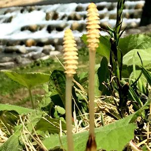 お天気良いから、畑見に行ったら、つくしんぼあった✌️🎶 ふきのとうにたんぽぽ💕 足が痛いと思ったら💦 この草の名前なんだったかな〜😭