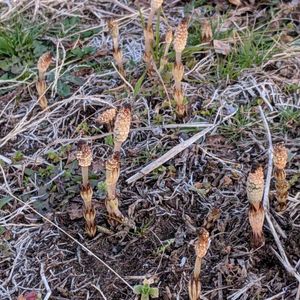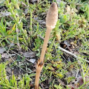 つくしです 今シーズン、初つくしです ウォーキング中の畑の斜面に ありました 最近、めっきり少なくなったような気がします 拡大してもらうと 「おぉ、つくしだー」とわかりやすいです