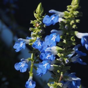 青いサルビアが道端に咲いていました