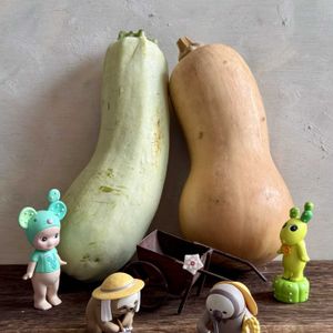 『もう、ナマケモノ🦥だなんて呼ばせないよね☹️』 『そうだよ❣️ 僕たち毎日暑いのに頑張ってるから、こんなに大きく育ったもんね😄』 ホント、暑くても休めない農作業🥦🍆🍅 いつもありがとうございます💕 ソニエンくん達に囲まれたお野菜、なんだか分かりますか❓ 答えは最後を見てね💚 ホヤさんのお花もそろそろ終わりみたいで、2つ落ちちゃいました🌸 2.3枚目に拡大写真📸 4枚目 『誰が齧ったんだ⁉️😨』 いくつも並んだアエオさんの中で、この子だけめっちゃかじられてました😭 5枚目の可愛い🌹ちゃんも被害に🤣💦 どうしたらいいか分からないので、とりあえずベニカスプレー撒きましたがショック😱 敵は色んな所に潜んでますね💦 まだまだ暑い日が続くので、皆さまご自愛くださいませ🍀 🍅🌽🥒🍆🍅🌽🥒🍆 答え 左は白いズッキーニ 右はバターナッツカボチャ 昨日お出かけしたら、有楽町の交通会館でマルシェが開かれていて、おもしろそうな野菜いっぱい買っちゃいました🎶 ズッキーニは緑と薄紫のもあったけど、色の薄いのは柔らかいよ❣️って言ってました。 バターナッツカボチャは、ブルーベリーやニンニク🧄大袋と一緒に買ったら、茶豆枝豆をオマケに貰っちゃった😆 他にも🍑とか🍉とか、気になるものがいっぱいあったけど、1人だし持ちきれないので断念💦 帰りに夫に駅まで取りに来て貰いました😅 この時期の新鮮野菜は嬉しいです💕 ソニエンくんの耳で 🏷️毎月3日は耳の日 可愛い🌹で 🏷️ピンクワールドへようこそ ホヤさん🌸で 🏷️mimimiのホヤ マチルダ 参加しますね😊