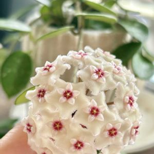 お友達から譲り受けた、マチルダさん お外に出してから、ずっとモジモジしていたけれど やっと咲いてくれました🌸 Hoya mathilde ホヤ マチルダ