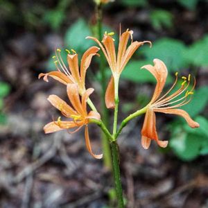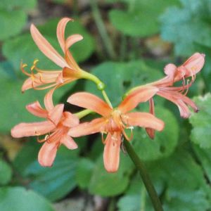 キツネノカミソリ グリーンスナップの今日のお花だそうな 月曜日にビタミンカラー🟠 ヒガンバナの仲間らしく花の時期には葉が終わっているので、気づいた時には雑木林の縁にニョキニョキと花茎を伸ばし、鮮やかな姿を見せてくれる(^^)