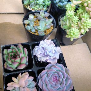 今日の多肉活動🤗その② 大好きな(笑)マルニガーデンにいってきました。土を買いにいっただけなんですけど💦ミニ多肉植物100円✨を見つけてしまいました。 根っこもでてる😆👍️ブロンズ姫と秋麗以外は名前はわからないけど(笑)