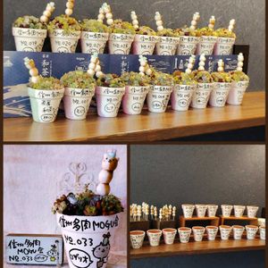昨日は信州多肉MOGU会のWSに参加しました🌵 入会してから初めての参加でしたが、既にお会いしていた皆さんとの久々の再会と、実は既にGSで繋がっていた…という皆さんとリアルでお会い出来、楽しくて充実した時間を過ごす事が出来ました😆🎶 今回のWSはちまちま寄せでしたが、楽しくおしゃべりしたり、場所提供をしてくださった茶房 和茶々さんの飲むわらび餅をいただきながらの制作は一味違う雰囲気で、既に顔見知りの方々がいたおかげもあり緊張せずに楽しめました👍 (ただ、集中してくると独り言が多くなるので、ご迷惑をおかけしたかも…😅) 残念ながら、WS終了後はゲブラナガトヨさんの八ヶ岳ファクトリーに探していた黒すずめと魅黒を購入しに行ってしまったので、引き続き皆さんと遅ランチなどができませんでしたが、次回の機会には参加出来ればと思っています 素敵な時間と繋がりを有難うございました🙇♀❤ 因みに、MOGU会でのネームは「ロザリオ」 以前GSで名のり、現在は某SNSで名のっている「Rosario Bianco(ロザリオ ビアンコ)」に由来しています Rosario〜といい、黄華(おうか)といい、どこまでブドウ🍇が好きなんだろう…自分😅💦
