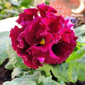 初めて見たフリルビオラのプティフール ヴァンルージュ 花びらの縁にところどころ細かな切れ込みが入っているフリル咲きが個性的で、ひとめぼれしてお迎えしました(深みのある赤系の色味も好みです❤) 来春沢山咲くようになったら綺麗だろうなぁ…🤤