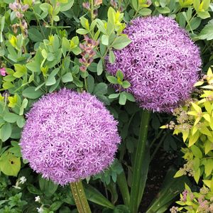 アリウム グローブマスター(多分😅) 一本木公園のバラ祭りに出掛けた時に、イングリッシュガーデンエリアに植えられているのを見つけました 最初はギガンチウムだと思っていたのですが、丈が思ったより低かったので調べてみたらグローブマスターにたどり着きましたが、あっているかしら?🤔 ギガンチウムと同じくらいのサイズの花が咲いていて圧巻でしたが、低い丈なので周りの植物に馴染んでいましたよ👍