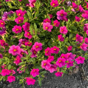 ミリオンベル チェリーピンク🍒 切り戻しから23日目🗓です もうすぐ満開🌸(ꕤ ॑꒳ ॑*)ノ 今育てているカリブラコアの中で1番成長が早くて、花付きも良いです😆