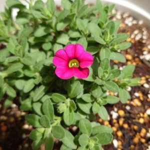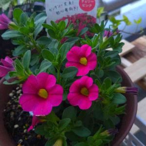 ついに開花🌸 ミリオンベルのチェリーピンク🍒 この子は分枝も良さそうだし、花色もチェリピン🍒って感じのはっきりとしたピンクが元気出そう❣️ この子はこのまま咲かせてみます。 ほかの2鉢はまたまたピンチ✂️しました。