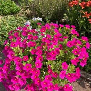 こちらも元気な子 サントリーフラワーズ ミリオンベル イエロー チェリーピンク 水切れしにくく、切り戻してもすぐ満開に🌸 タグが埋もれてしまうほど大きくなりました 二泊三日の旅行に出かけても、元気にしてくれてたので良かった〜👏 いつまでも色鮮やかですね