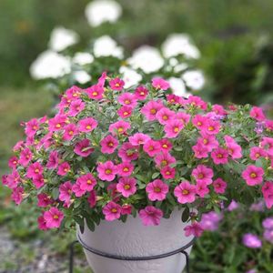 【ミリオンベル】 サントリー 『ミリオンベル チェリーピンク』 丸い方の2つ植えた鉢 切り戻しから約1ヶ月で満開になりました😍💕 「みどりのまとめ」 『ミリオンベル』成長記録✨ (サントリー定点観測モニター) 更新しました😊 今回から、更新したところに 🆕 と、入れることにしました❗️
