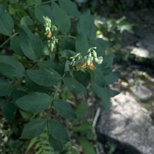 2023/7/30撮影 イタチササゲ マメ科レンリソウ属 高原の道脇に生えていました。 花は、直立した花序を形成し、クリーム色ですがれるとオレンジ色🍊になるのが、特徴的な大型の野草。 花色がイタチの毛の色に似ているところからつけられています。 阿蘇の代表的な植物のひとつだが、今回、新たに脇道に入って行った場所で、初めての出会いでした。