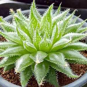 こんにちは。 ハオルチア テネラ この子は購入時から放置していたのですが、最近爽やかな柔らかい緑になってきて、お気に入になりつつあります。 深めに植えてみたら更に可愛くなりました😊