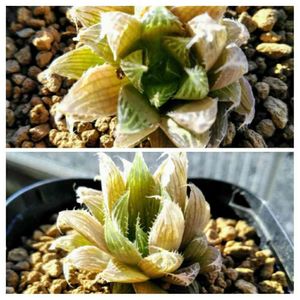 本日2枚目の投稿です💕ダイソー産の🌵名無し🌵ハオルチア1号(下)とハオルチア72号(上)の🌵テネラ🌵 実物はもっと似ています🤩名無しさん、テネラさんだったのね💗