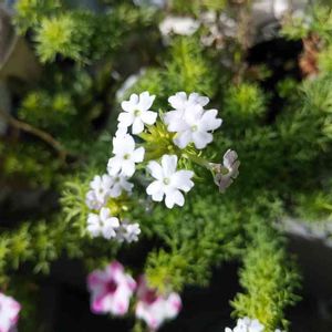 黄金葉のバーベナテネラ、花はホワイトかわいいです😊