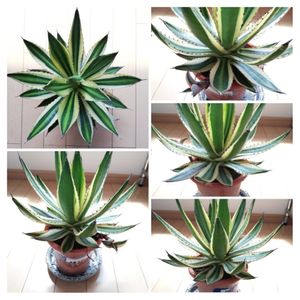 トゲトゲへのときめき(*゚-゚) おはようございます(^^)×2w 気温も上がって 今のところ天気も良いので 久しぶりにシャワー🚿してあげた 我が家のSuper Variegata Agaveさん達٩( ᐛ )و 怒雷神錦さんベルシャフェルティ٩( ᐛ )و 吉祥冠錦さんスーパークラウン٩( ᐛ )و 五色万代さんロファンザ錦٩( ᐛ )و