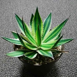 元々かなり傷んだ状態でウチにきたんだけど、雪の日以外は屋外で管理してたらキレイな葉に入れ替わってきた。 成長を感じられて嬉しいな😄 アガベ 五色万代 Agave lophantha variegata