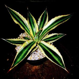 こんばんは! 蒸し暑いですが、時々風が吹いてきます! 夜のアガベ:五色万代